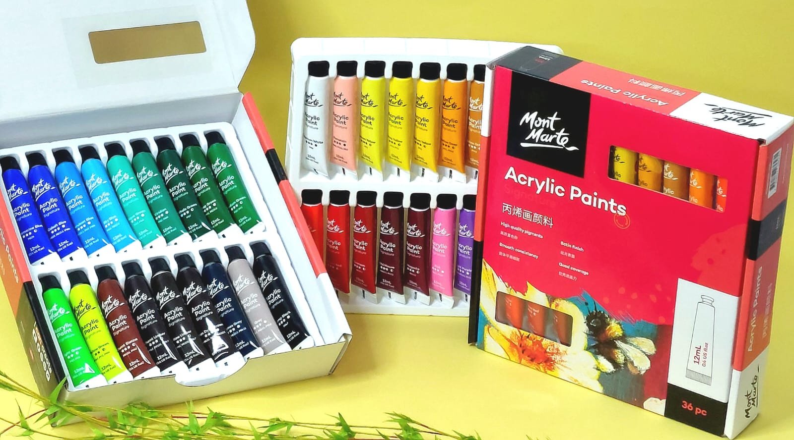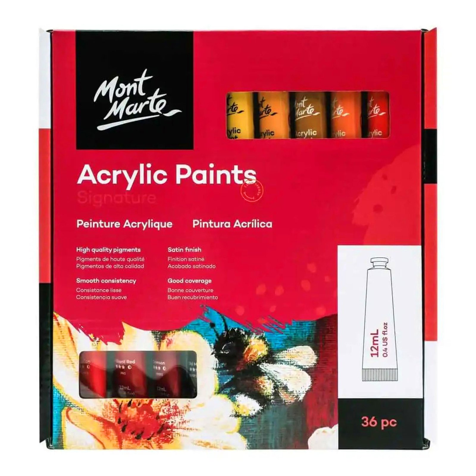 Unleash your creativity with the Mont Marte Acrylic Paints Signature Set! This comprehensive set includes 36 vibrant colors, each in a 12-ml tube, offering a broad spectrum of hues for all your artistic needs. Whether you’re a beginner, hobbyist, or professional artist, this set is perfect for canvas, wood, fabric, leather, paper, and most other surfaces.